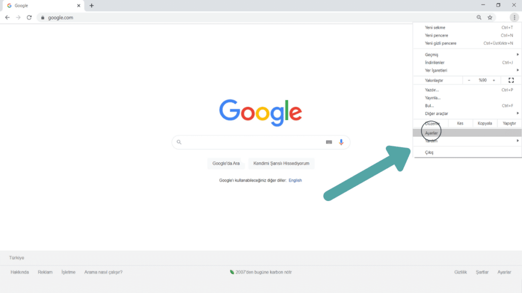 - Chrome tarayıcınızı açın ve sağ üstte yer alan menüden “Ayarlar” seçeneğini tıklayın.