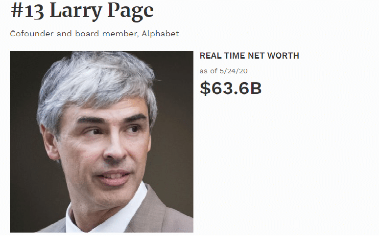 Kurduğu iki şirketi var: Google ve Alphabet. 63.6 milyar dolarlık serveti ile dünyanın sayılı zenginlerinden birisidir.