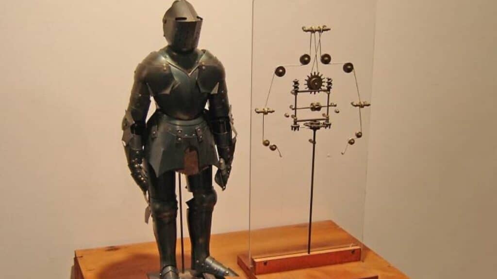 Leonardo’nun insan anatomisi çalışmaları, tarihte bilinen ilk insansı robotlardan birinin tasarımına yol açmıştır. Da Vinci Milano’da bir yarışma için dişli, tekerlek ve kablo dolu robotu tasarlamıştır. Alman-İtalyan Orta Çağ zırhıyla kaplı robotun, 1495 yılı civarında yapıldığı ve Milano Dükü’nün ev sahipliğinde bir kutlamada sunulduğuna inanılıyor.