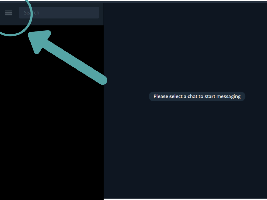 - Karşımıza çıkan ekranda sol üstte yer alan üst üste üç çizginin olduğu bölümden Telegram menümüzü açıyoruz.